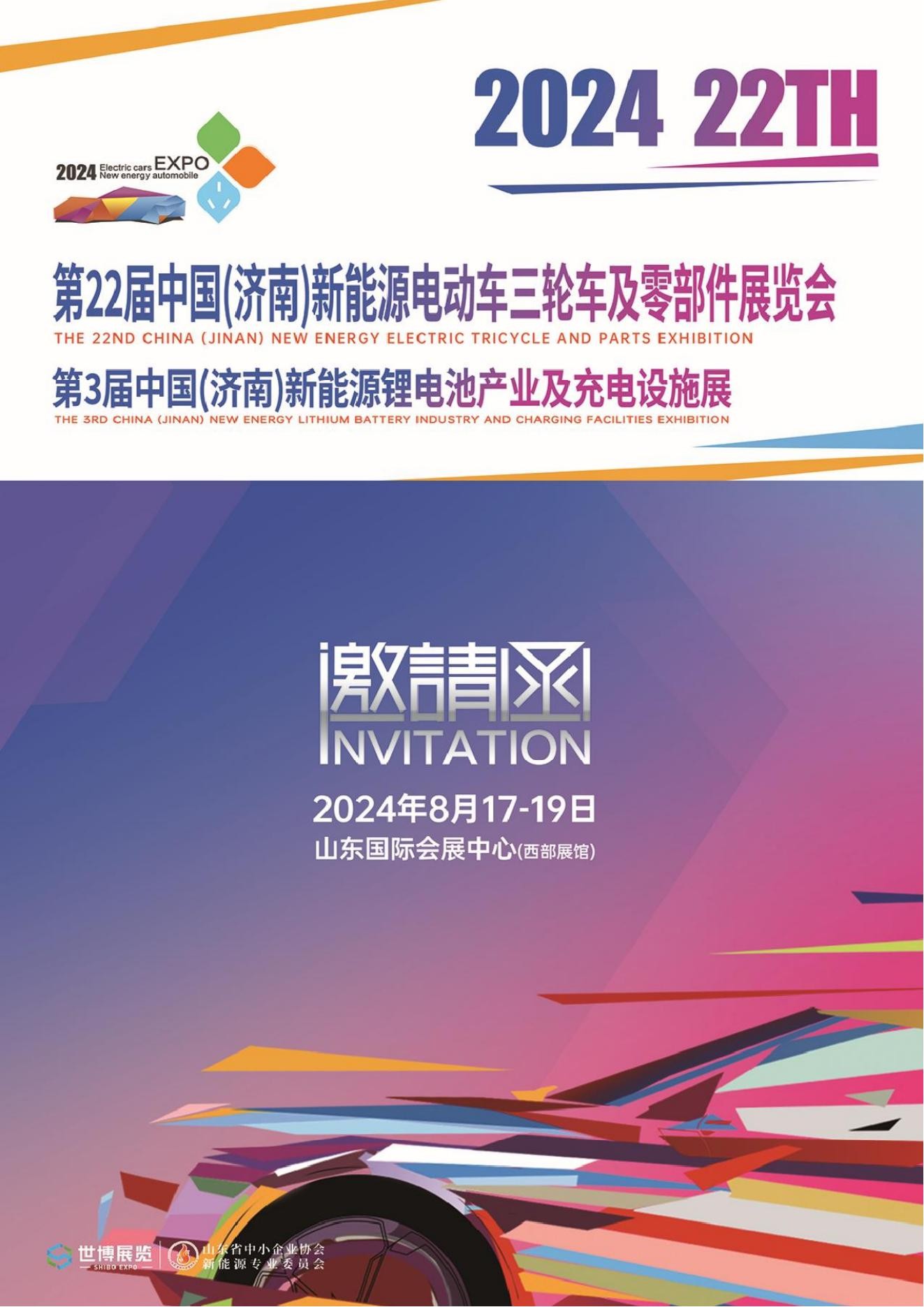 2024第22届济南新能源电动车、锂电池及零部件展览会邀请函2024年8月17-19日 山东国际会展中心中国(济南)新能源电动车展览会,已成为我国新能源汽车电动车行业发展的风向标,是国内通过全球展览业协会(UFI)认证的新能源汽车电动车专业展会。展会历经20余年的发展,形…
