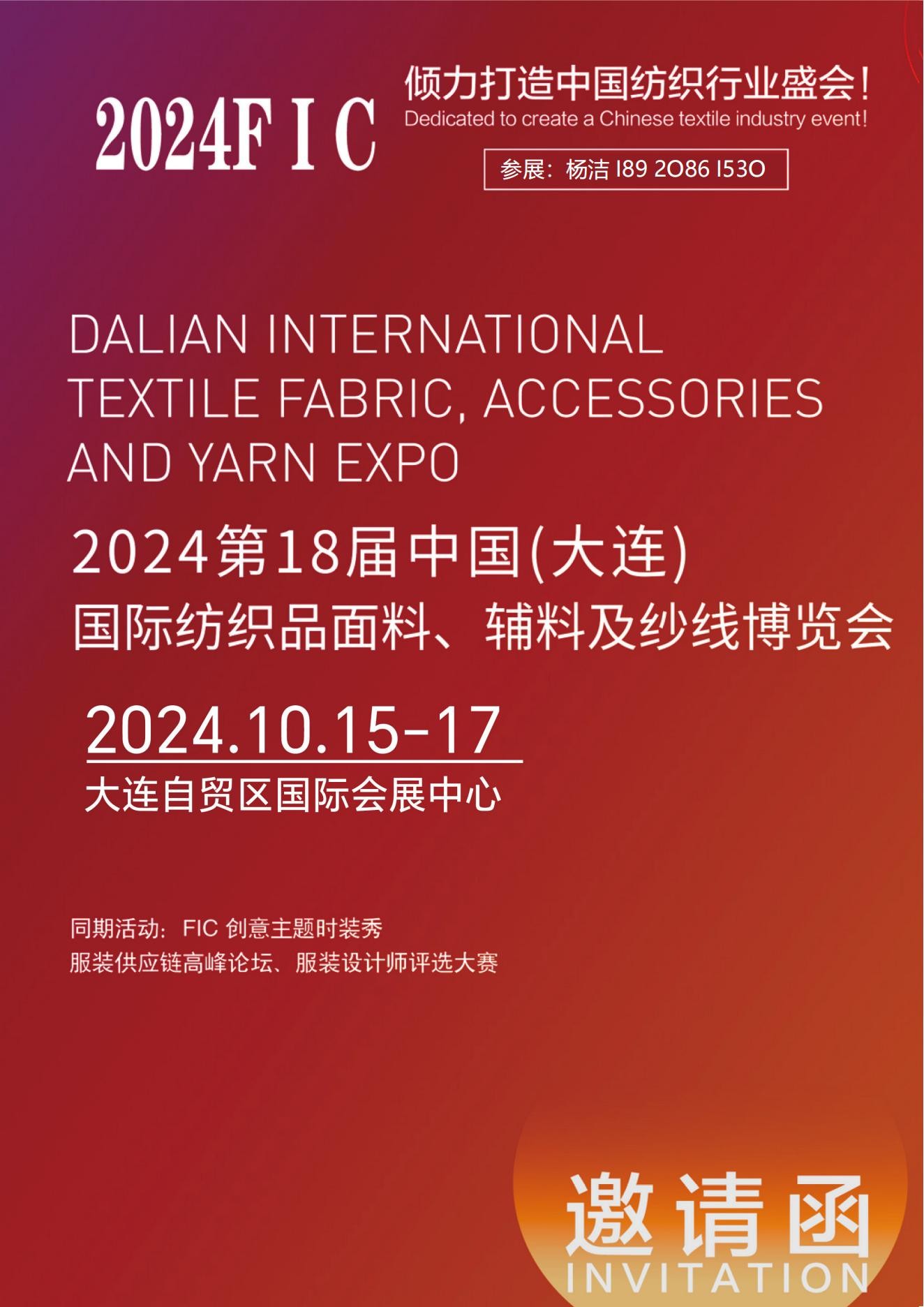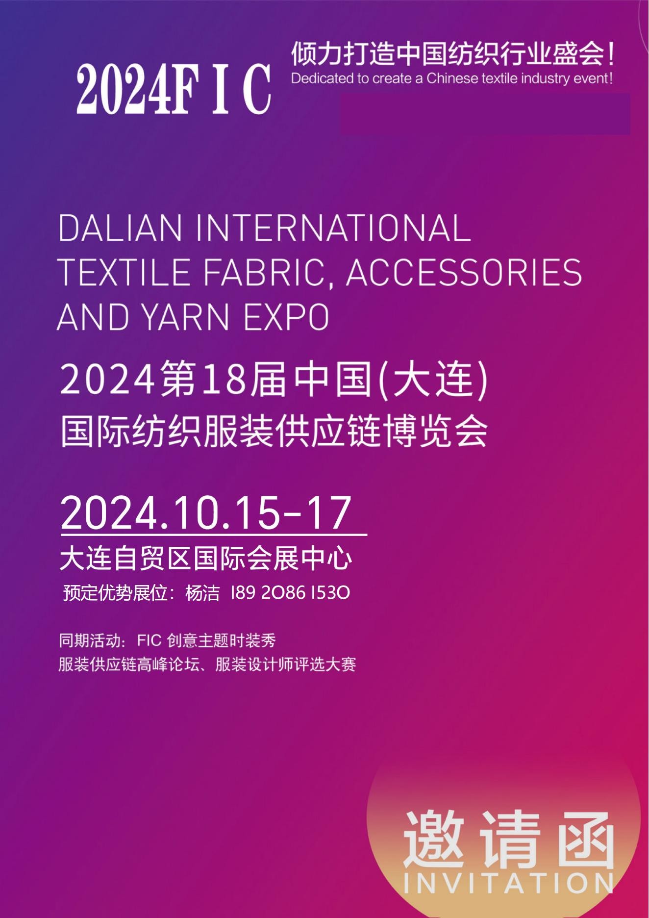 倾力打造中国纺织行业盛会!Dedicated to create a Chinese textile industry event! 2024第18届中国(大连)国际纺织服装供应链博览会DAL IAN INTERNATIONAL TEXTIL E FABRIC, ACCESSORIES AND YARN EXPO2024.10.15-17大连自贸区国际会展中心 同期活动: FIC 创意主题时装秀服装供…