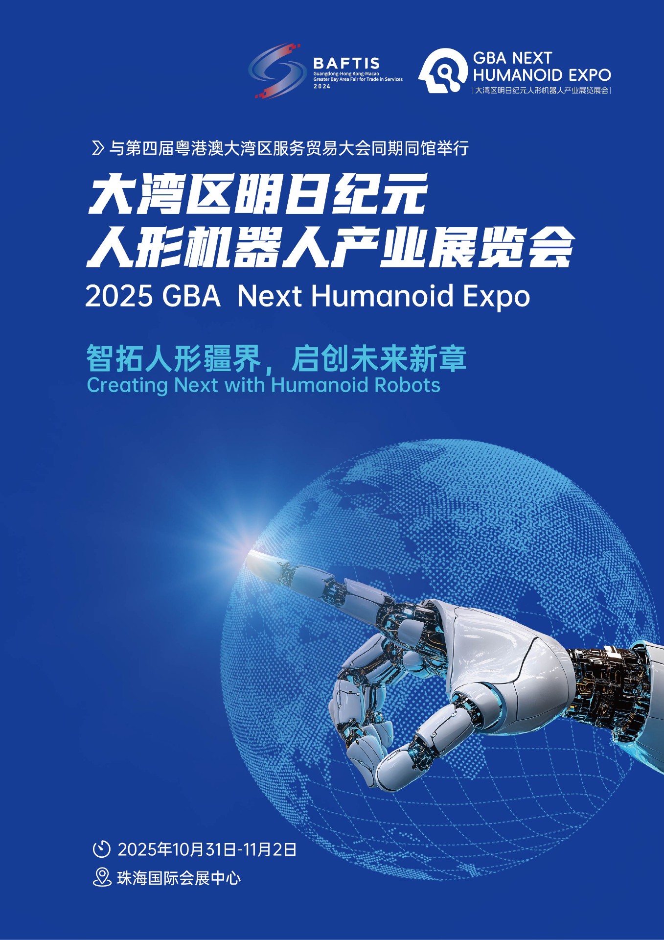 一、展会名称:2025大湾区明日纪元人形机器人产业展览会 二、展会时间:2025年10月31日-11月2日 三、展会地点:广东珠海国际会展中心 四、展会概况:由广东省人民政府、香港特别行政区政府、澳门特别行政区政府指导,广东省商务厅、珠海市人民政府、香港商务及经济发展局、…