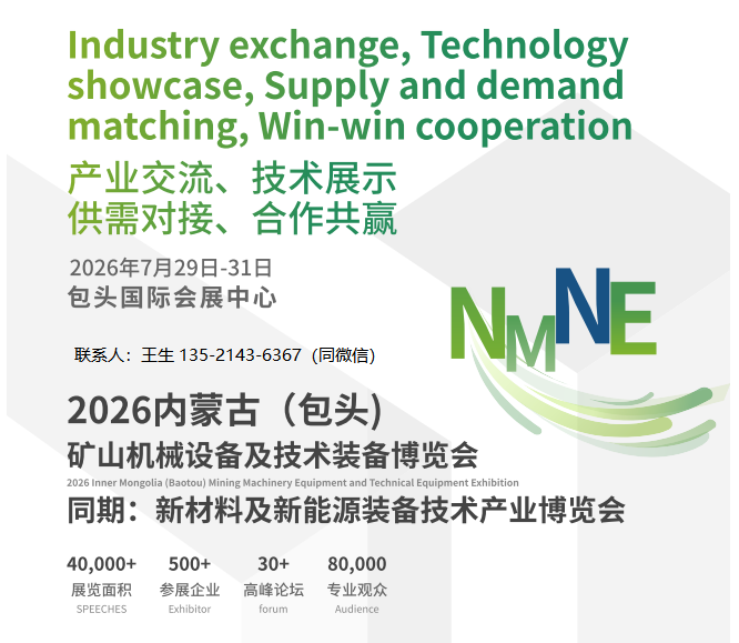 2026内蒙古(包头)矿山机械设备及技术装备博览会同期: 新材料及新能源装备技术产业博览会展会时间:2026年7月29-31日论坛时间:2026年7月29-30日展览地点:包头国际会展中心展会规模:展览面积4万平米、展商500余家、观众8万人次展会主题:材启未来,能创无限承办单位内蒙古贸…
