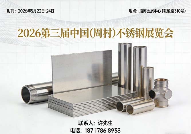 2026第三届中国(周村)不锈钢展览会时 间 :2026年5月22日-24日 地 点 :淄博会展中心(联通路310号)【展会概况】由中国钢铁工业协会不锈钢分会、山东省不锈钢行业协会、淄博市周村不锈钢行业协会、上海钢联电子商务股份有限公司主办,的“2026第三届中国(周村)不锈钢展览会于…