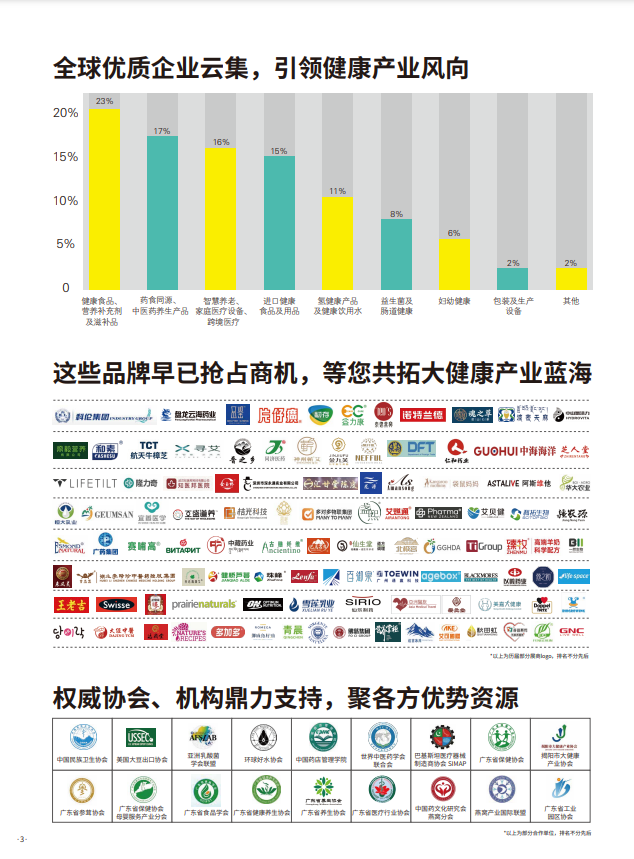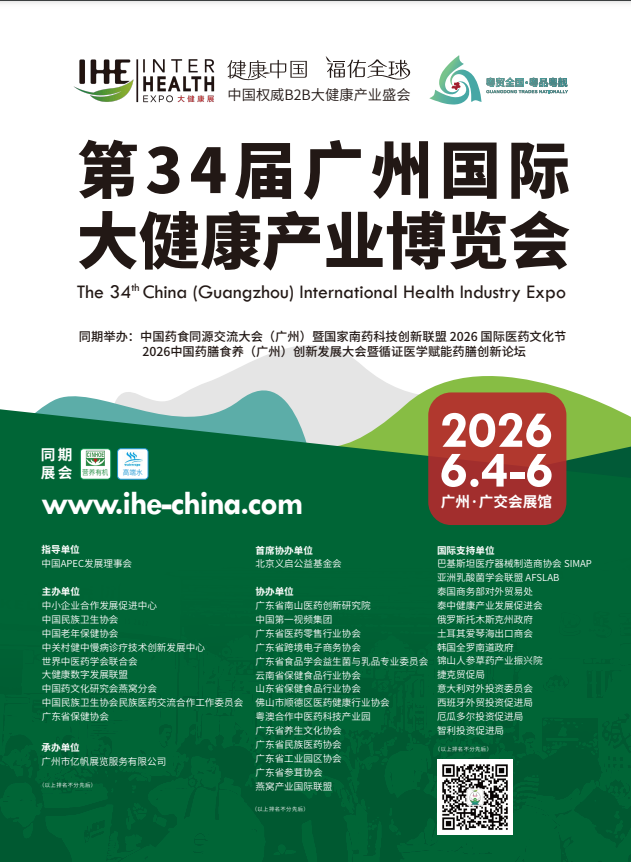 广州国际大健康产业博览会(简称IHE China)创办于2002年,迄今已连续举办至第34届。IHE China 围绕“健康中国,福佑全球”的主题,持续专注深耕大健康赛道,致力于打造大健康产业间的高效商贸链路,构建高质量发展的大健康产业生态。展会以全题材、多维度、新变革为切入点,深度挖掘国内外大健康全产业链的领军企业和新锐品牌,打造内外双循环一体化的高效产销对接平台。依托庞大的专业观众数据库,IHE China 精准把握大健康产业新趋势与新变革,深入解构大健康产业B2B商业采购以及终端健康消费需求,精准邀约国内外数万人次代理经销商、连锁药店、电商、商超百货、商协会等专业采购商到场参观洽谈。展会同期呈现多场不同内容维度的专业论坛会议活动,聚焦行业热点话题,直击行业前沿动态。IHE China 承载大健康产业全品类、高质量、多元化的展览展示,以高效便捷的产销对接,专业精准的观众邀约,广泛深入的宣传推广,助力广大客商深耕大健康赛道,缔造品牌形象,把握行业风口,共赢未来。