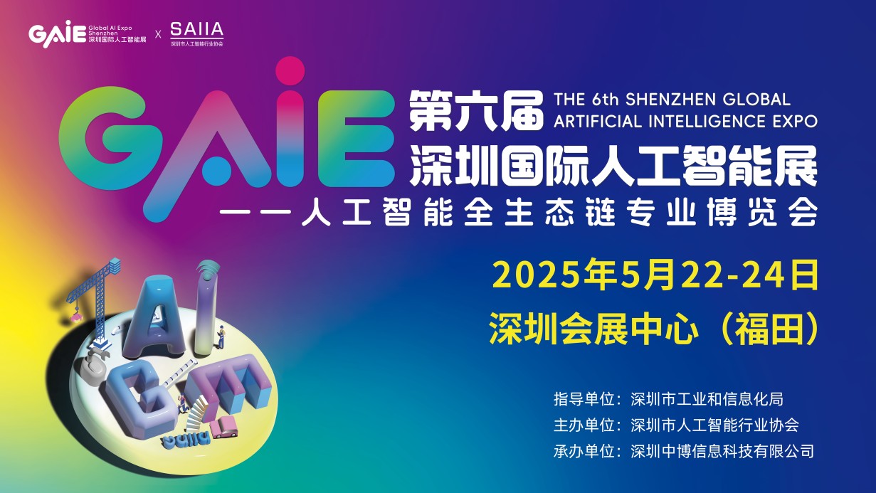 GAIE2025第六届深圳国际人工智能展览会THE 6th SHENZHEN GL OBAL ARTIFICIAL INTEL L IGENCE EXPO人工智能全生态链博览会 时间:2025年5月22-24日地点:深圳会展中心(福田)指导单位:深圳市工业和信息化局主办单位:深圳市人工智能行业协会深圳市万博展览有限公司 参展咨询:…