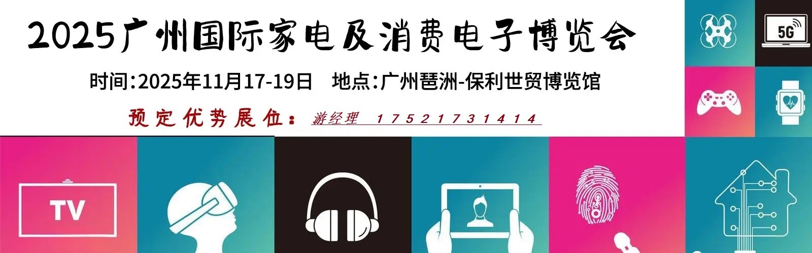 2025广州国际家电及消费电子博览会 时间:2025年11月17-19日 地点:广州琶洲-保利世贸博览馆 基本信息 主办单位:上海辉德展览服务有限公司 深圳励宸国际展览有限公司 展出面积:预计30,000平方米 展商数量:预计600家 观众数量:预计30,000人次 影响全球:全球20多个和地区…
