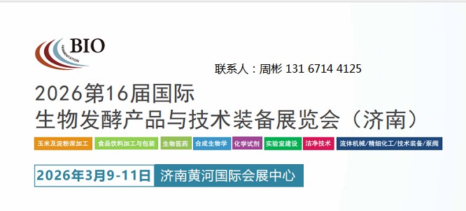 2026第16届国际生物发酵产品与技术装备展览会(济南)同期举办:玉米及淀粉深加工 | 生物医药 | 合成生物与智能制造 | 化学试剂智慧实验室建设 | 洁净技术 | 精酿啤酒 | 精细化工/技术装备/泵阀2026年3月9-11日 | 济南黄河国际会展中心BIO CHINA 2025优势与亮点50场行业论坛30…