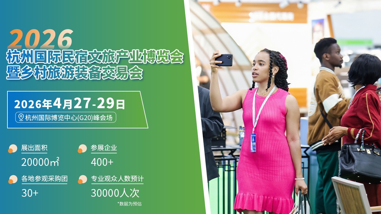 2026杭州国际民宿文旅产业博览会 暨乡村旅游装备交易会 时间:2026年4月27--29日 地点:杭州国际博览中心(G20)峰会场 亚太民宿文化第一展聚焦“五创”行动与世界民宿文化产业博览会支持单位 杭州贸易促进会 浙江省旅游协会 杭州市旅行社行业协会 杭州市旅游协会景区…