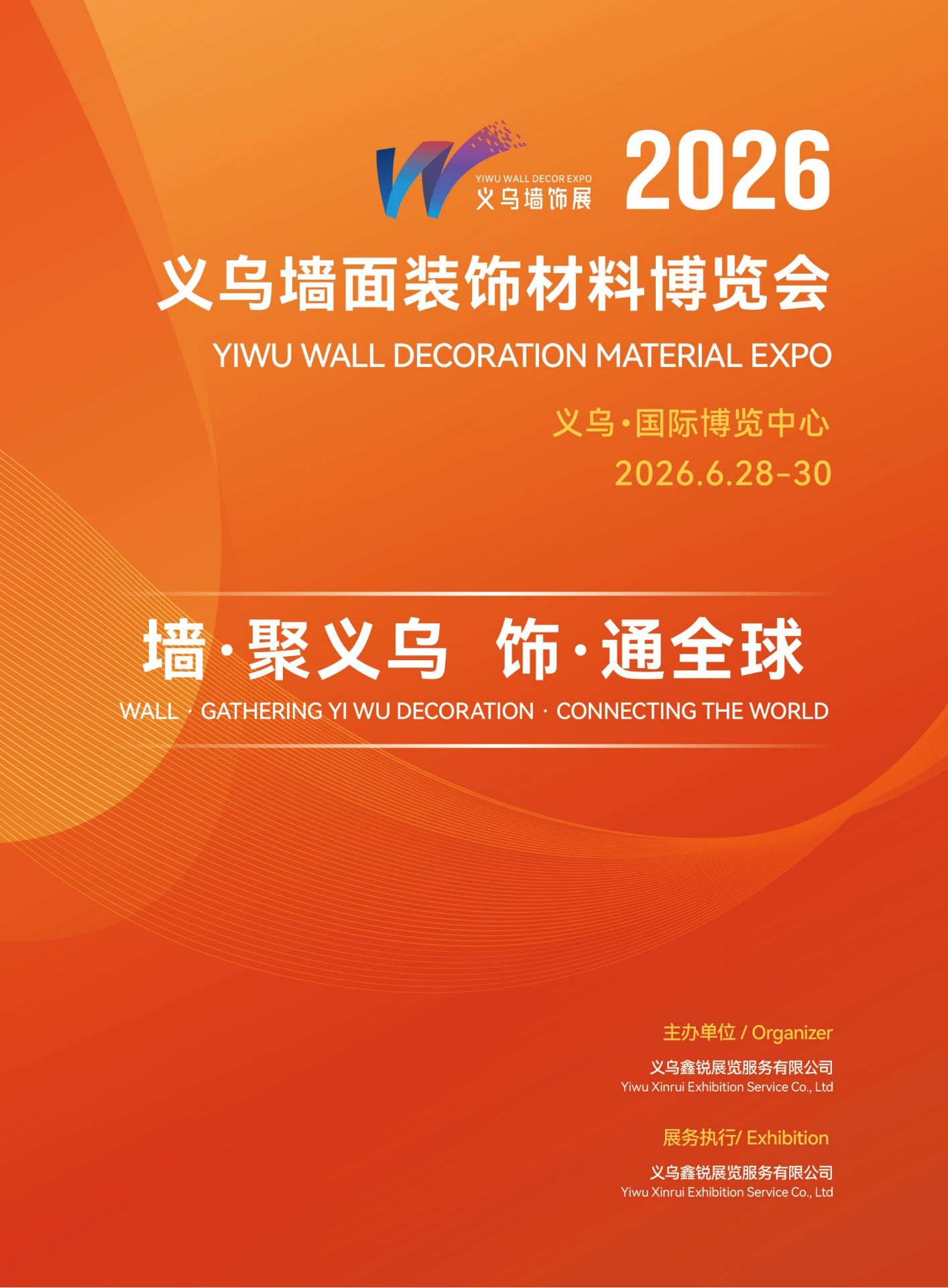 2026义乌墙面装饰材料博览会时间:2026年6月 28-30日 地点:义乌国际博览中心主办单位:义乌鑫锐展览服务有限公司展务执行:义乌鑫锐展览服务有限公司【市场分析与需求】随着人们对家居环境要求的提高,墙面地面装饰材料市场规模不断扩大,样式多样化,对环保材料的需…