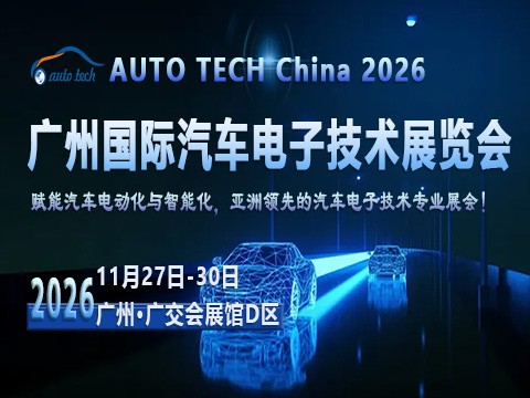 AUTO TECH China 2026 第十三届广州国际汽车电子技术展览会时间:2026年11月27日-30日 地点:广州中国进出口商品交易会展馆D区亚洲地区领先的汽车电子技术专业展;与来自世界各地的汽车工程师们进行交流的会展平台!AUTO TECH China 汽车电子技术展是关于各种汽车电子解决方…