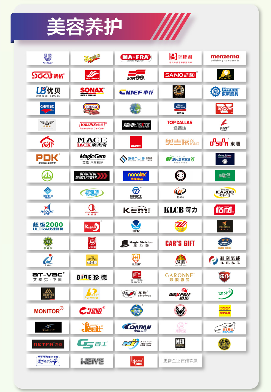 1、趋势方向第十届中国洗车论坛2022中国汽车后市场产业趋势峰会(供应链)2022汽车定制趋势发布会布局全链路·跨境新生态暨跨境电商趋势峰会中国汽车内饰品牌大会暨汽车座垫脚垫转型发展论坛汽车易损件新渠道研讨会暨快修快保拓新联盟计划启动仪式2、干货培训干法&卖法 2022雅森帮会员节大会第三届中国汽车维修诊断技术峰会新能源及智能网联汽车技术研讨会(新能源电池维修)润滑油及养护品经销商开年第一课2022年润滑油经销商“利润倍增”公开课加油站精英站长特训营北京3、产品发布雅森严选 2022汽车后市场新品发布会2022天猫车品年度策略宣讲会暨新店招商大会第三届公益义卖大会暨红军小学少年硅谷创客教室捐建曼泽纳2022—中国汽车美容行业经销商大会卡莱斯改色膜新品品鉴会酷德TPU改色新品发布纳尔PPF七星旗舰动态营销系统发布会雷朋超“膜”时代,showgirl产品秀SONAX全系列汽车养护品推介活动邦办脚垫网新品发布会爱科科技新一代切割机推介会骏玺汽车下护板新概念主题发布会茶多酚水墨系列脚垫新品发布天德优品脚垫新品发布会牧宝汽车内饰材料新品品鉴会百隆雨刷新品(祛油计划)发布会4、竞技演示第二届汽车检测养护设备竞技演示会 5、行业评选首届汽车内饰专属奖项评选洗车产业百强品牌榜首届汽机油行业年度奖项评选2021年度为“匠心质造”品牌点赞2021年度为“创新服务”企业点赞更多同期活动,持续更新中……