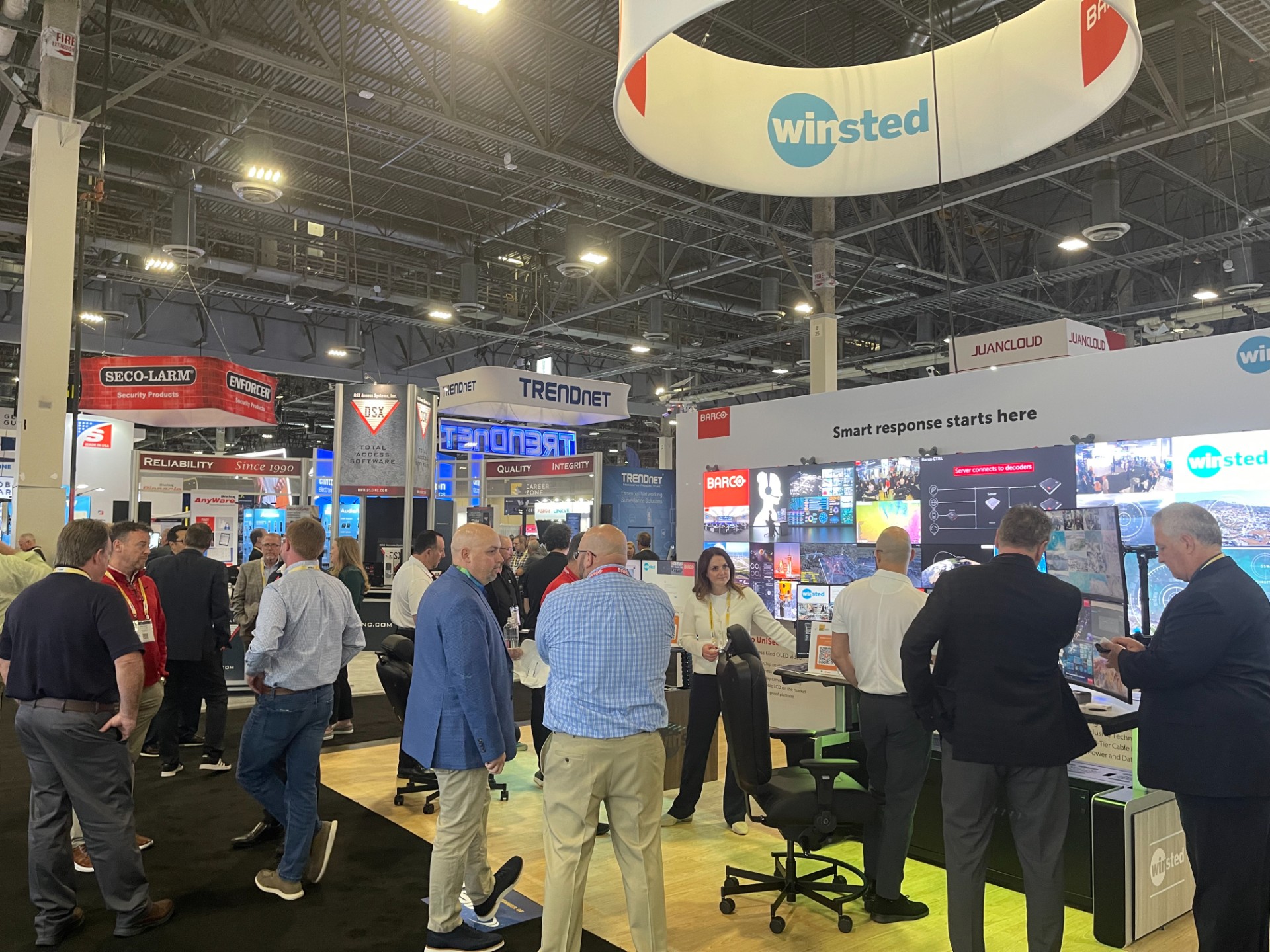 2025年美西安防展,到场的安防产品终端用户占比25%。在3天的展会期间,整个展厅人头攒动。业内人士和来自企业的技术专家、工程专家在展会现场探讨行业当前面临的问题和挑战;同时,业内人士亦与制造商探讨新产品开发的瓶颈和未来市场对新产品的需求。到今年为止,安防行业协会新产品发布会(The SIA New Product Showcase,NPS)自 1979年首届至今,已举办 59届。今年的新产品发布会为 70多家企业展出了 70 多件产品及解决方案,气氛十分活跃。 本次参展的中国企业有100多家,展示了包括防盗类电子产品、信息网络安全产品、无线通讯产品、防护产品、智能家居及物联网应用等多个领域的最新技术和产品。这些展品不仅满足了市场对安防产品的多样化需求,也展示了中国安防行业在技术创新和产品研发方面的强劲实力。