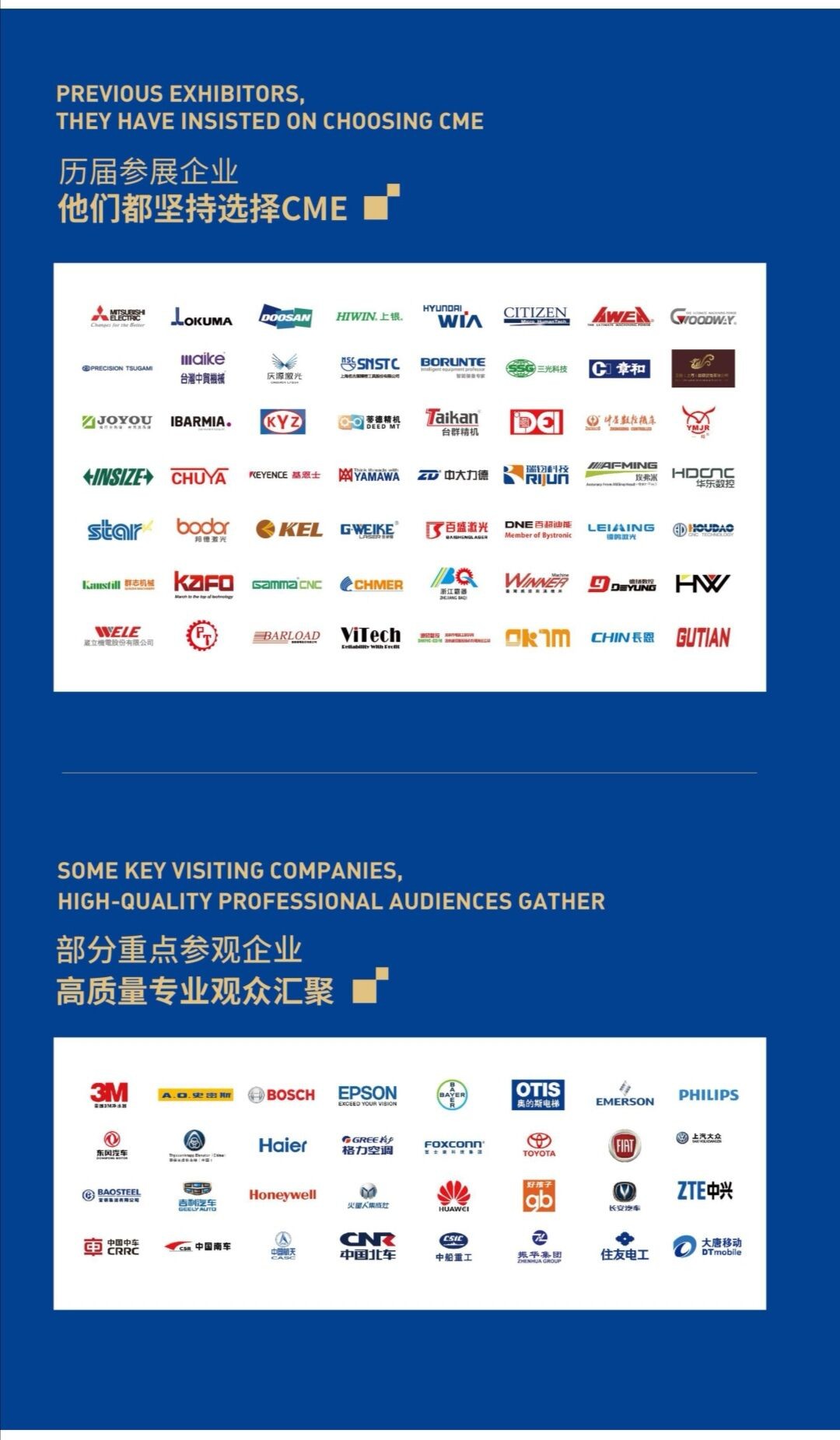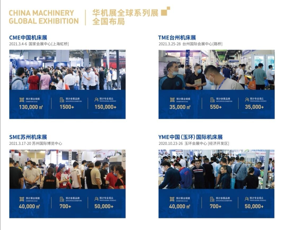 CME中国机床展时间:2021年3月4-6日地点:上海虹桥国家会展中心举办规模:展会规模130,000㎡ ,预计参展品牌1500+,预计专业观众150,000+主办单位: 商务部外贸发展事务总局承办单位:上海华品展览服务有限公司