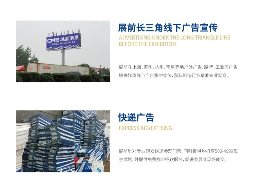 五大主题展区1.切削机床展区车、铣、镗、钻、磨、加工中心(卧式、立式、龙门式、组合式)等电火花机床、线切割机床、微孔加工、雕刻机、打标机、液压压力机等。2.成型机床展区折弯机、剪板机、切割机、钣金数控加工设备;冲床、压力机、挤压机等;激光切割机、焊接机、打标机等;模具;钣金处理设备、加工软件等。3.磨削工具展区各型面加工刀具、涂层、材料、附件、磨床、磨削材料、配件等;三坐标测量仪、影像投影仪、激光干涉仪、各类千分尺、对刀仪、测量仪等。4.机床附件展区各种机床功能部件、机床附件、机床电器等;气动液压元件及装置、数显装置等;润滑油、工业清洁等工厂相关配套产品等。5.智能工厂展区工业自动化、AGV/分拣工业机器人、工业软件、液压气动元件、物流自动化系统、机器视觉技术、人工智能机器人等。