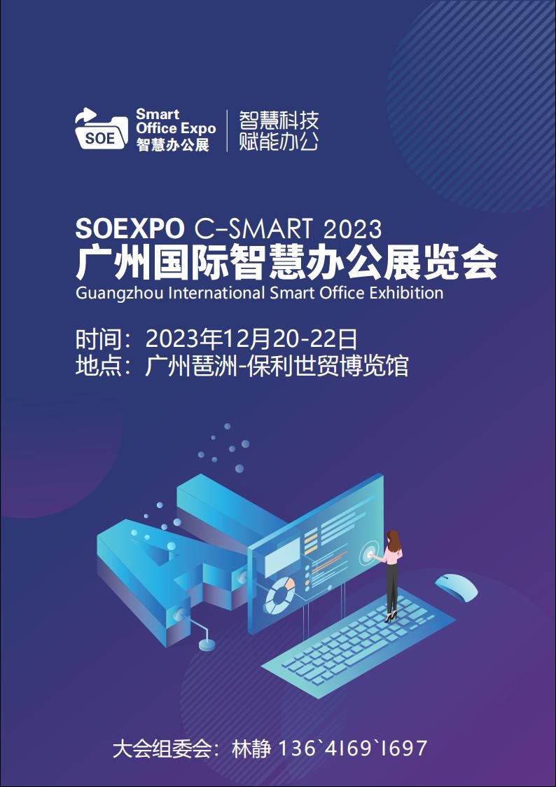SOEXPO C-SMART 20232023广州国际智慧办公展览会Guangzhou International Smart Office Exhibition 2023时间:2023年12月20-22日 地点:广州琶洲-保利世贸博览馆(海珠区新港东路1000号) 〓 展会简介 〓随着科技的快速发展,智慧办公逐渐成为企业提高工作效率、降低成本的关…