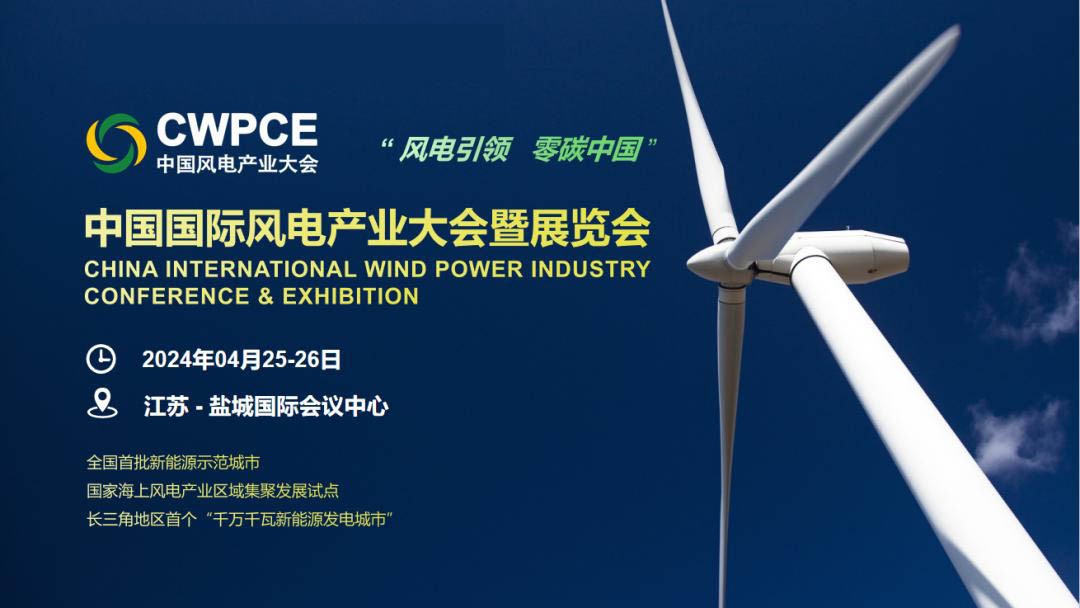 全球最具影响力和权威性的风电产业大会 汇聚风电制造、开发、运维、施工、储能、光伏、政府单位等单位 2024中国国际风电产业大会暨展览会 时间:2024年04月25-26日 地点:江苏盐城国际会议中心 全国首批新能源示范城市 国家海上风电产业区域集聚发展试点 长三角地区首个"…