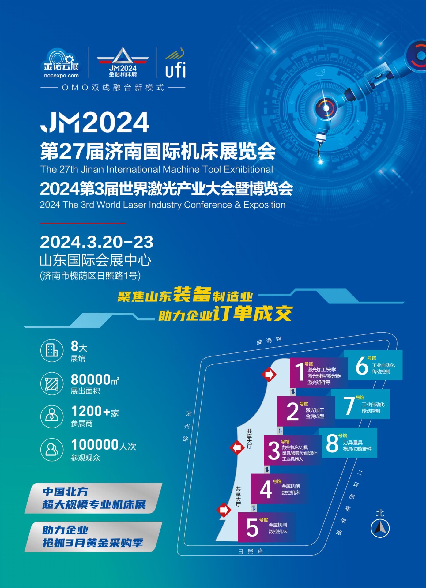 JM2024第27届济南国际机床展览会 The 27th Jinan International Machine Tool Exhibitional2024第3届世界激光产业大会暨博览会2024 The 3rd World Laser Industry Conference & Exposition 时间:2024年3月20-23日地点:山东国际会展中心(济南市槐荫区日照路1号)承办单位:…
