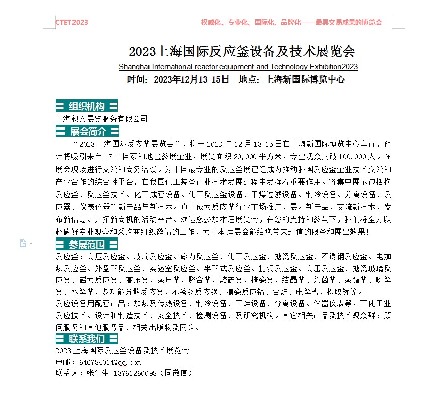 Shanghai International reactor equipment and Technology Exhibition2023