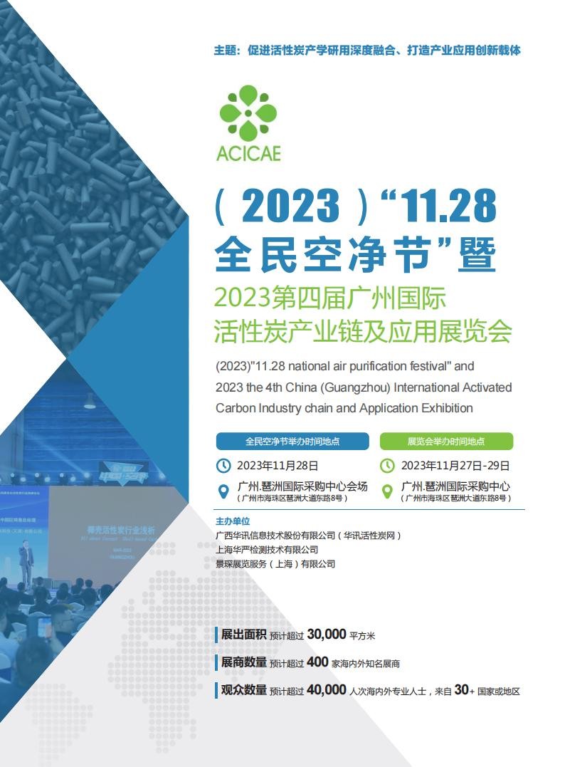 (2023)“11.28 全民空净节”暨第四届中国(广州)国际活性炭产业链及应用展览会(2023)"11.28 national air purification festival" andThe Fourth China (Guangzhou) International Activated Carbon Industrial Chain and Application ExhibitionApplication Exh…