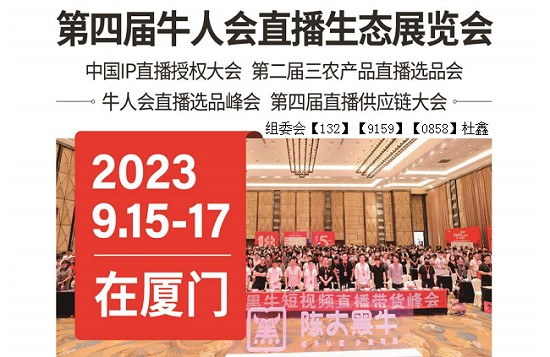 2023第四届牛人会直播生态(义乌)展览会 同期举办:牛人会直播选品峰会 第四届直播供应链大会 时间:2023年9月15-17日 地点:厦门国际会展中心主办单位:牛人会 浙江牛牛会展服务有限公司 协办单位:浙江手拉手供应链管理有限公司 承办单位:浙江牛牛会展服务有限公…