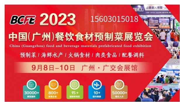 BCFE2023中国(广州)餐饮食材预制菜博览会时间:2023年9月8日-10日 地点:广州广交会展馆 主办单位: 广东省食品流通协会 广州佰威国际展览有限公司【展会介绍】为进一步推进餐饮行业的快速发展和创新升级,2023中国(广州)餐饮食材暨预制菜产业博览会将于2023年…