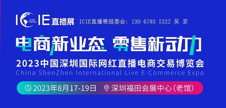 ICIE中国深圳国际网红直播电商交易博览会 —— 电商新业态 零售新动力—— 时间:2023年8月17日-19日 地点:深圳福田会展中心 组织机构 主办单位:广东省直播电子商务协会 上海扩展展览服务有限公司 承办单位:广州扩展展览服务有限公司 参展预定:吴京【130】【6793】【1322…