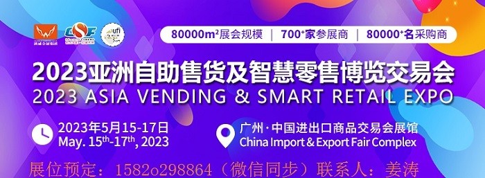 2023第十届亚洲自助售货及智慧零售博览交易会The 10th Asia Vending & Smart Retail Expo 2023时间:2023年5月15--17日 地点:广州广交会展馆主题:融合创新 自助科技规模:80000㎡,参展商:700+家,采购商:80000+名主办单位››››中国商业联合会智慧商业分会 …