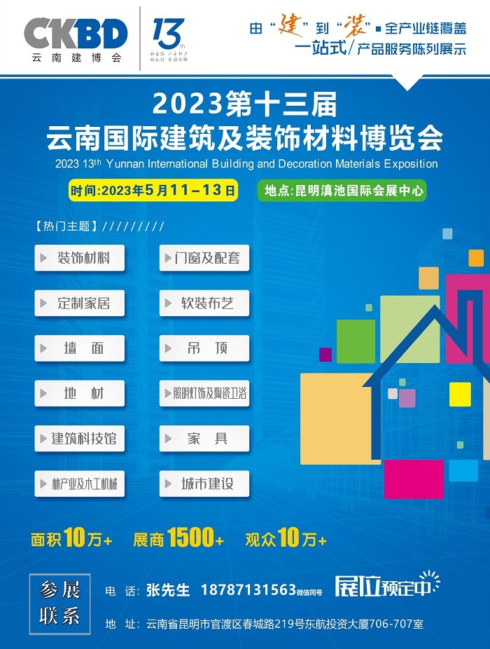 关键词:云南建博会,云南全屋定制展,云南定制家居展,云南智能家居展,云南装饰材料展,云南卫浴展,云南厨电展,云南墙面展,云南吊顶展,云南建材展2023云南昆明全屋定制智能家居展览会|装饰材料|厨电|卫浴|吊顶2023第13届云南建筑及装饰材料博览会2023第13届云南建筑建材及装饰材料…