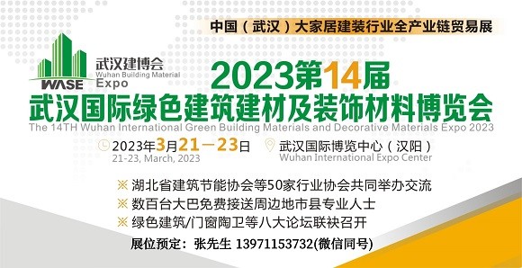 历久弥新 更精一步 中国(武汉)大家居建装行业“全产业链”贸易展--- 2023第14届武汉国际绿色建筑建材及装饰材料博览会2023 The 14th Wuhan International Green Building Materials and Decoration Materials Expo2023年3月21-23日 武汉国际博览中心(汉阳)专题展:2023第…