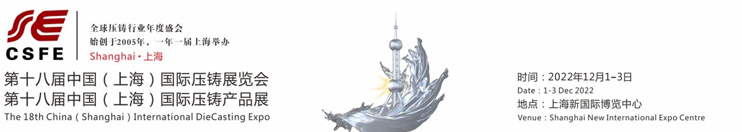 Shanghai International DieCasting Expo2022第十八届中国(上海)国际压铸展览会2022第十八届中国(上海)国际压铸产品展60000㎡展示面积、700家企业齐聚、50000名专业观众!时间:2022年12月1-3日地点:上海新国际博览中心(浦东区龙阳路2345号)主办单位华东地区铸造协会上…