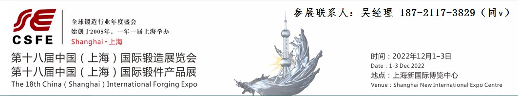 Shanghai International Forging Expo2022第十八届中国(上海)国际锻造展览会2022第十八届中国(上海)国际锻件产品展60000㎡展示面积、700家企业齐聚、50000名专业观众!时间:2022年12月1-3日地点:上海新国际博览中心(浦东区龙阳路2345号)主办单位上海市汽车行业协会汽车…