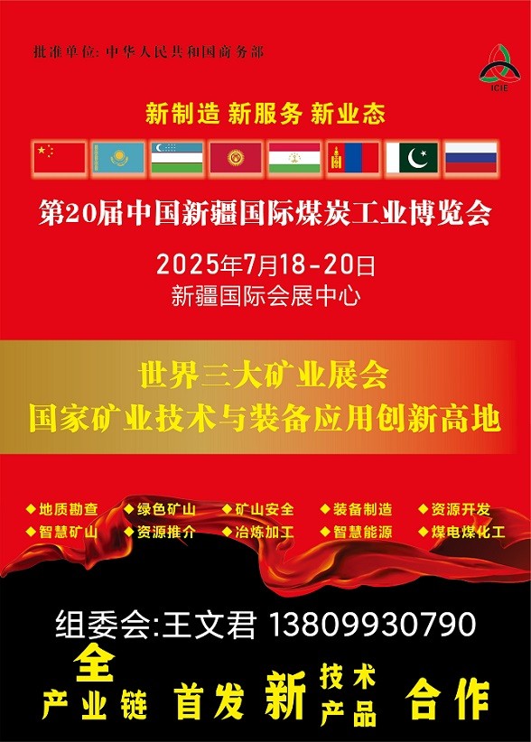中国新疆国际煤炭工业博览会(新疆煤炭展)2025年7月18-20日大会秘书处 :王文君 电 话:138 0993 0790(同微信) 一、大会主题新质生产力与全球矿业合作二、时间与地点(一)丝路矿业合作论坛、新疆矿博会、新疆煤博会时 间:2025 年 7 月 18-20 日地 点:乌鲁木齐新疆国际会…