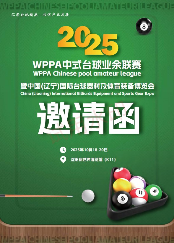 2025WPPA中式台球业余联赛暨中国(辽宁)国际台球器材及体育装备博览会邀请函大会联系186-2198-0788大会介绍中国台球行业的发展已经走过了一个非常长的历程,在过去的几十年里,它一直处于一个快速发展的趋势之中。近年来,台球运动在国内持续升温,在这一趋势的驱动下,中国台球…