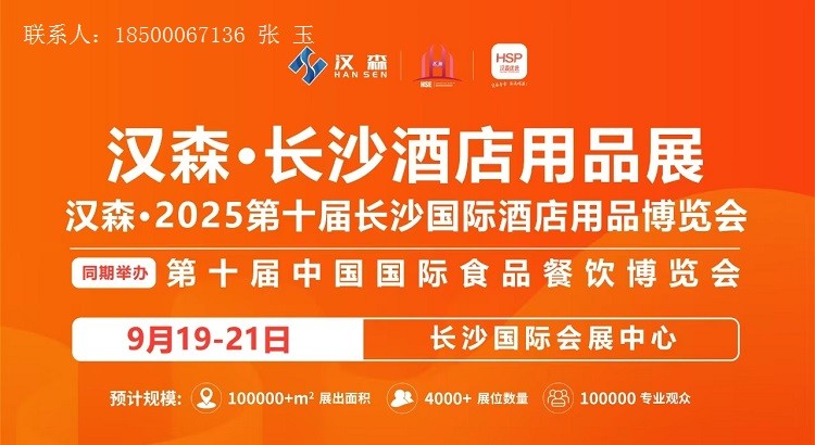2025第10届湖南(长沙)国际酒店用品博览会The 10th Hunan (Changsha) International Hotel Supplies Expo 20252025年9月19-21日长沙国际会展中心(国展路118号)展会规模1000+参展企业 100,000㎡+展示面积 100,000+专业观众承办单位北京汉森国际展览有限公司【展会简介】湖南…