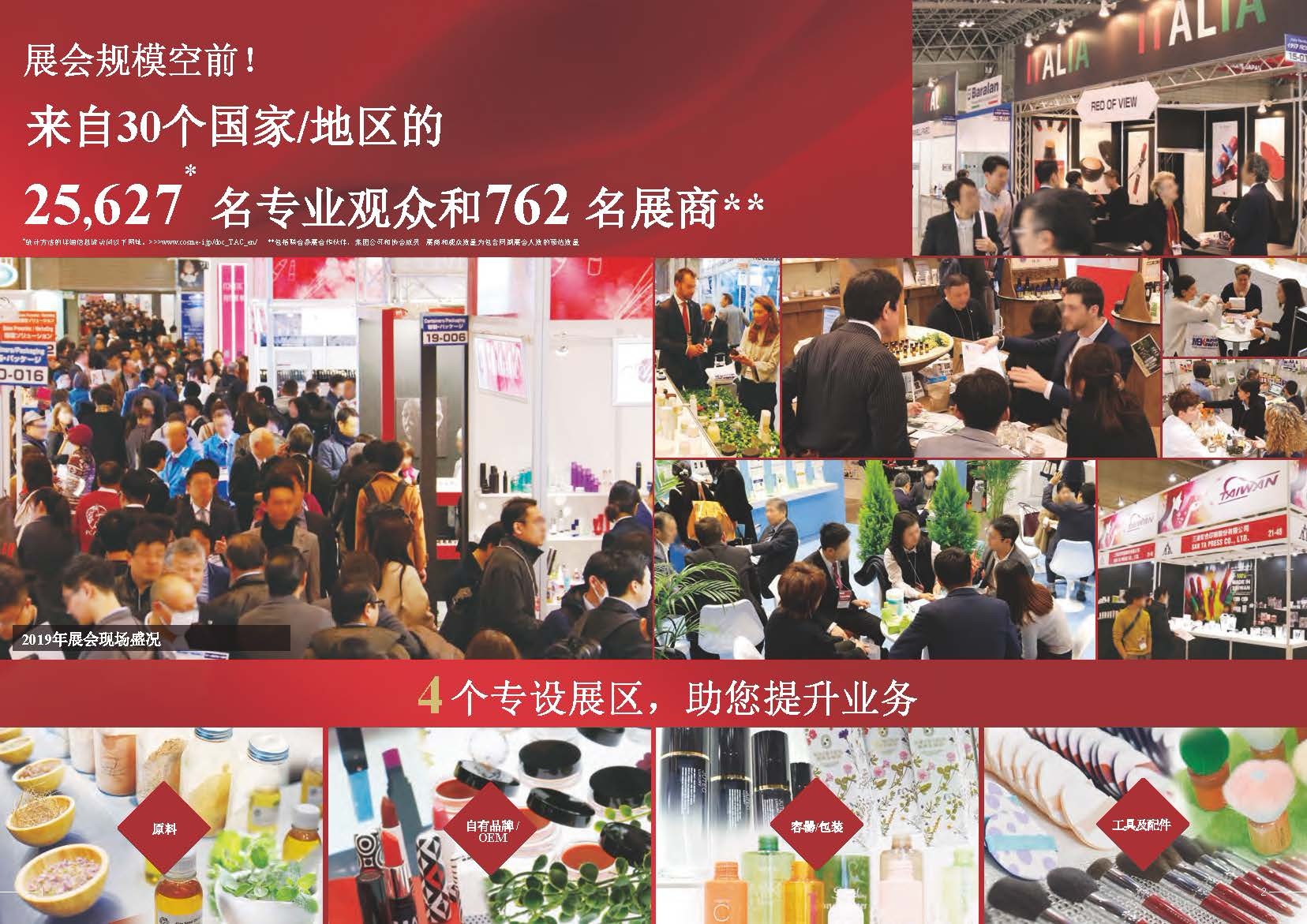 2020年日本国际美容、美发、美甲、包材原料展是由日本最大的主办方 Reed 励展展览集团主办, 每年在日本举办超过 173 场展会,致力于 B2B 专业商展, 提供全球业者前进日本市场最佳商务平台。COSME Tech是近年来获得新客户的最佳平台之一,展会中汇聚的专业观众不仅有来自于全世界领先的化妆品制造商,也包括中小规模的制造商、新的公司以及贴牌生产商,此外,国际专业观众尤其是来自亚洲的专业观众呈逐年上升趋势