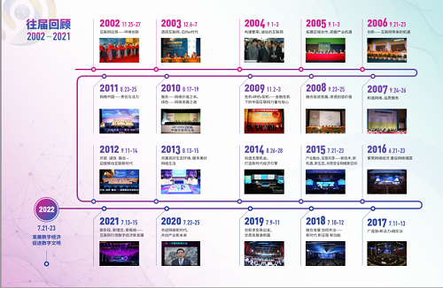 展会将与“2022第二十一届中国互联网大会”同期举办。“中国互联网大会”从2002年至今已成功举办二十届,历届大会得到了工业和信息化部、国家互联网信息办公室、国家发展和改革委员会、地方人民政府等部门的指导与支持。上届互联网大会期间,共举办高价值论坛25场,400余位重磅级嘉宾演讲,260家媒体全方位报道,15个视频平台一线直播,完成28个重大项目启动和签约,线上浏览量突破600万,线下参会观众逾32000人。大会凭借高端规格、专业品质、前沿内容及其开放精神,已成为国内极具规模、极为专业、极有价值的互联网品牌盛会。2022年大会将全新升级,由工业和信息化部主办,中国互联网协会承办,届时,将有百余位政府领导、院士、国内外专家学者和企业嘉宾走上大会舞台,千余家机构参与论坛和展览,展示创新成就、共话技术发展、探讨治理理念、洽谈互惠合作、展望未来愿景。