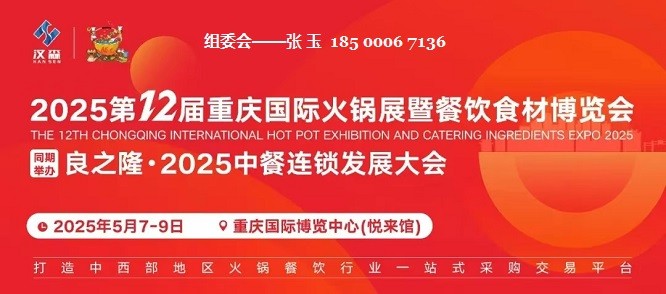 2025第12届重庆国际火锅食材用品展览会【公司官网】时 间:2025年5月7-9日地 点:重庆国际博览中心展会规模80000+ 平米 展示面积2800+ 参展企业80000+ 专业观众主办单位北京汉森国际展览有限公司重庆汉唯斯展览展示有限公司联系人:张 玉手机:185 0006 7136同期活动:第十二届重…
