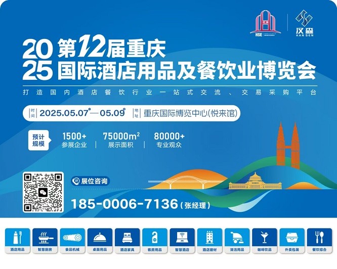 2025第12届重庆国际酒店用品及餐饮业博览会【公司官网】2025年5月7-9日中国重庆国际博览中心(悦来馆)展会规模3000+ 国际标准展位 80000 + ㎡ 80000 + 专业观众承办单位北京汉森国际展览有限公司重庆汉唯斯展览展示有限公司联系人:张 玉 手机号:185 0006…