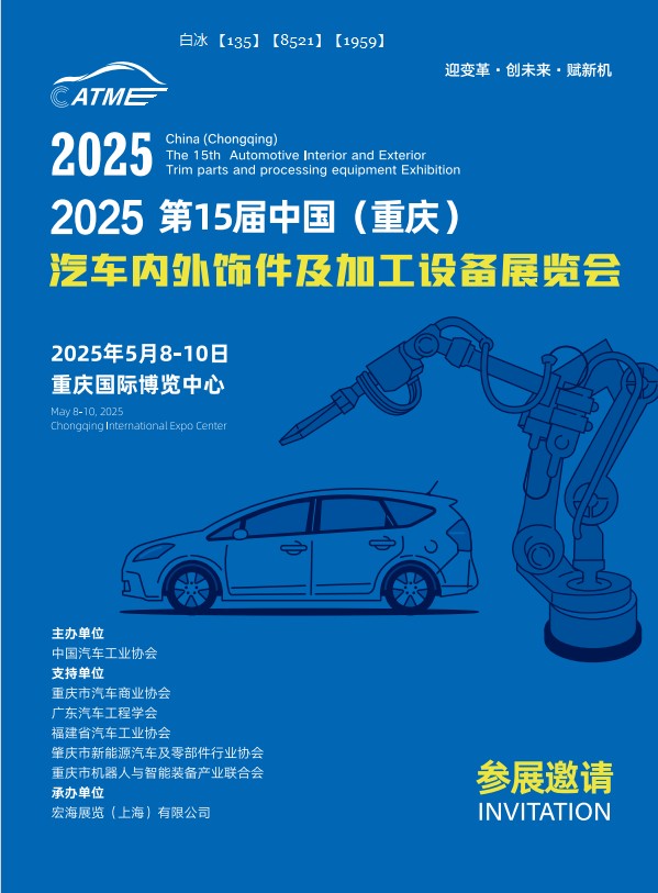 2025第15届中国(重庆)汽车内外饰件及加工设备展览会时间:2025年5月8-10日地点:重庆国际博览中心引领汽车技术潮流趋势,打造中国汽车技术第一展,2025第15届中国(重庆)汽车内外饰件及加工设备展览会简称:重庆汽车内外饰展,将于2025年5月8-10日在重庆国际博览中心隆重举…